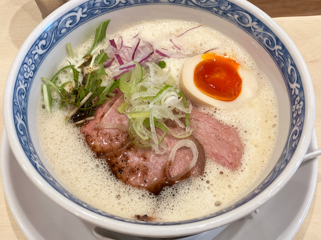 【鶏白湯そば 界】オリジナリティが光る、ポルチーニ泡鶏白湯をいただきました。個性を主張しつつも、しっかりまとまっている点が、ラーメンとしての高評価ポイントです