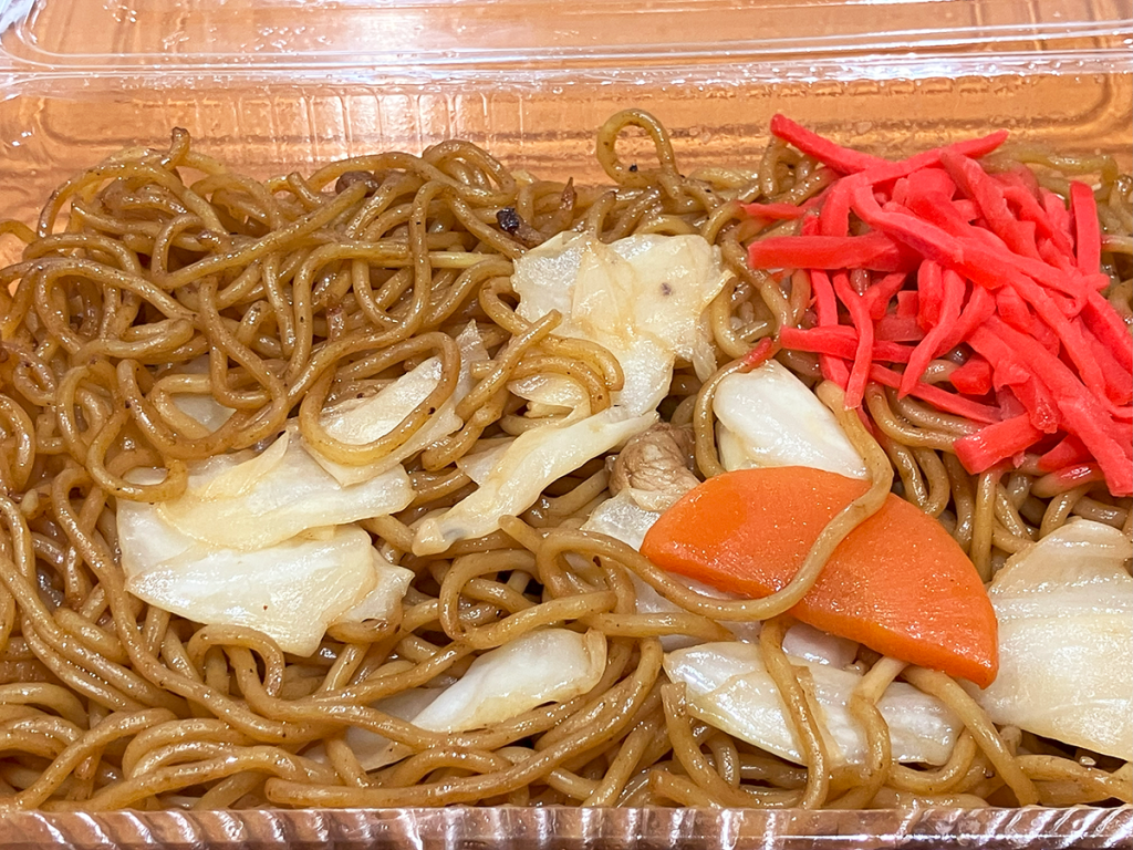 焼きそばは、注文するとプラスチック容器に入った状態で保温されているものを、渡してもらえます。
