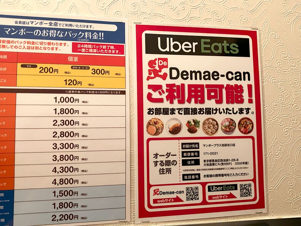 そして、マンボープラス 池袋北口店ではウーバーイーツ出前館から注文すると、部屋まで料理を運んできてもらえるようです。