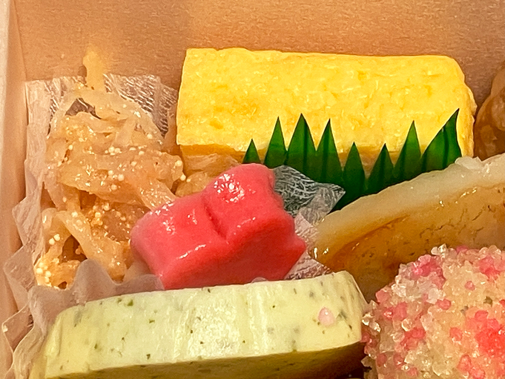 おかずは、玉子焼きや高野豆腐などのスタンダードなものから、初めて目にするものまで、実に多種多様でした。
