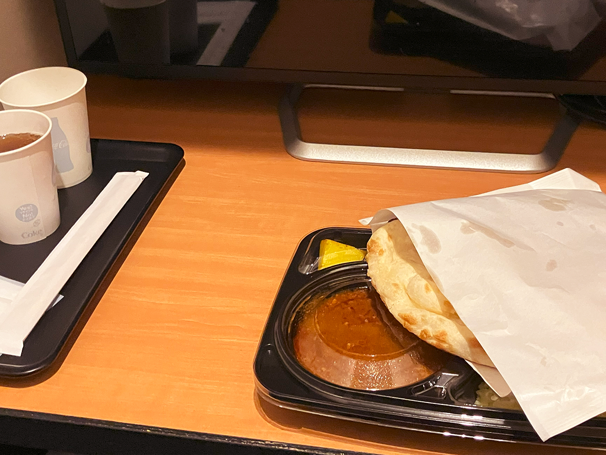 最近、利用する機会がだんだんと増えてきた、完全個室タイプのネットカフェで、テイクアウトしたお弁当をいただくパターンになります。