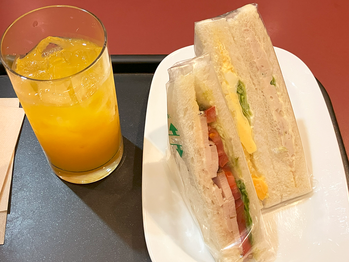 できあがるのを待つ必要がなく、すぐ食べ始められるという利点がありますし、「カフェ・ベローチェ」のサンドイッチは味も気に入っていますしね。